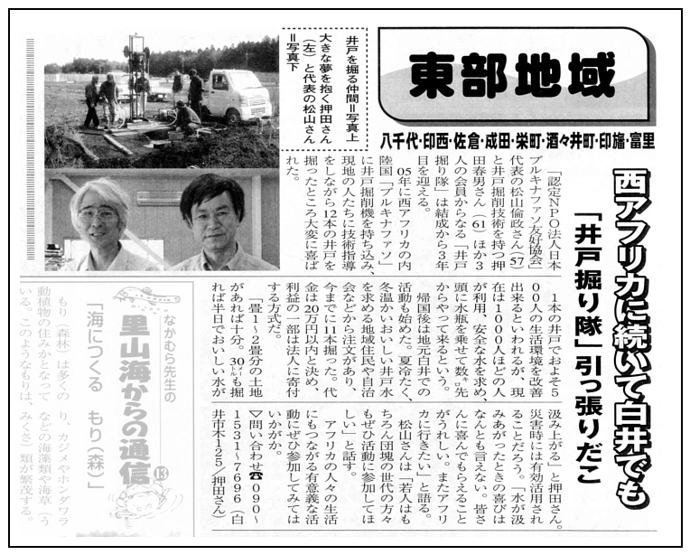 | 毎日新聞 | 井戸掘り隊ひっぱりだこ | 2007年9月5日号 |